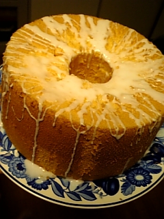 こないだスーパーで卵が特売だったから、久しぶりにシフォンケーキ焼いてみた。アイシングクリームもかけてみた。