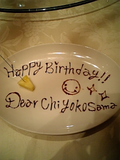 レストランのシェフからのサプライズ!メッセージプレートを作ってくれました。